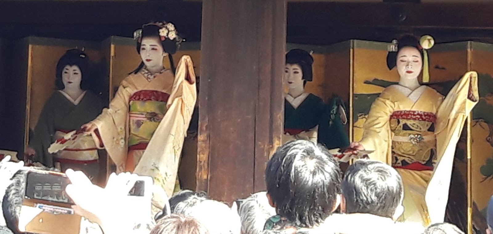 I also happened to be there just at the right time for this... I don't well know what it is all about, but for a few thousand yen you could take part in a special ceremony where you got two boxes of something (don't know what, didn't take part) and an arrow. These were being performed pretty much continuously for small groups of people. But then there came quite a special group (possibly actors of something that had been performed before?) who got an extra special ceremony, with a sword dance: